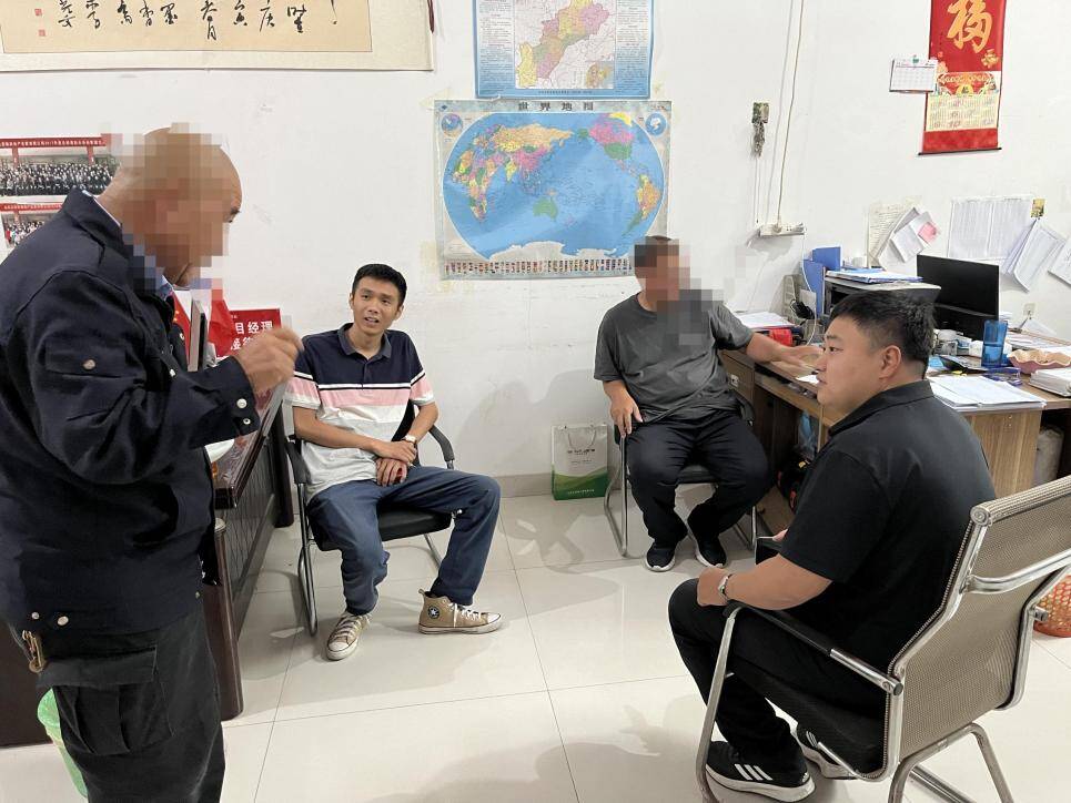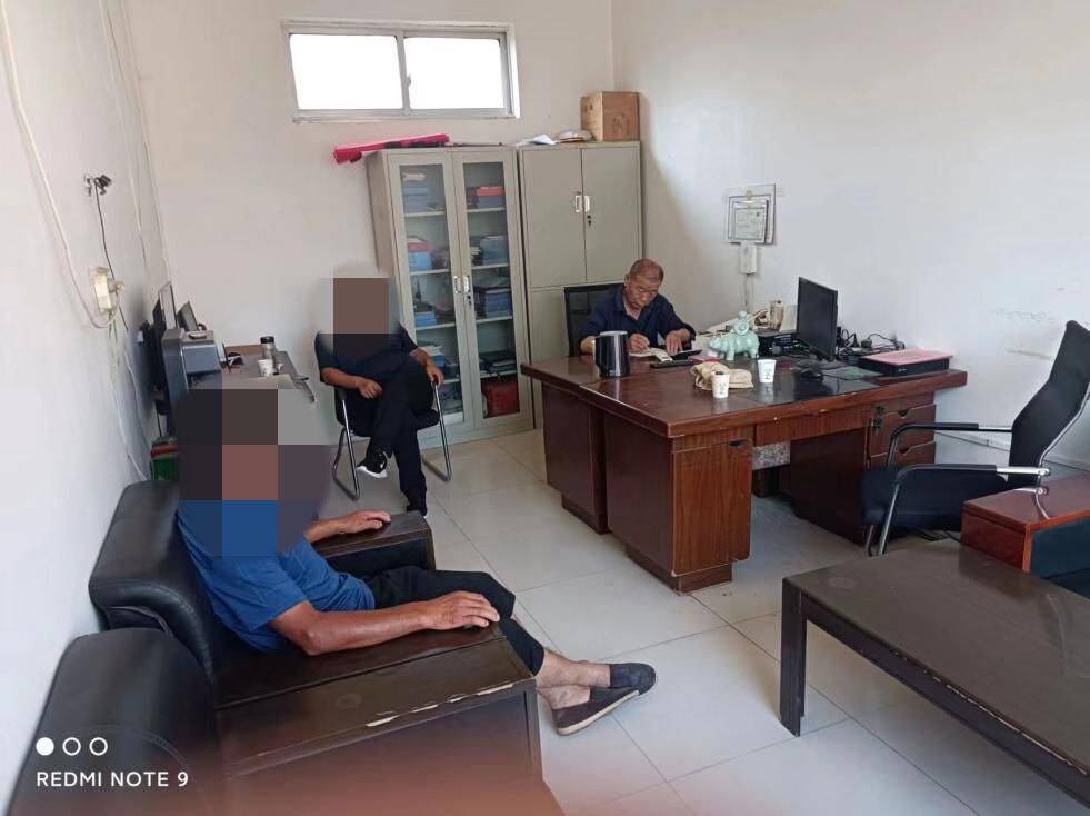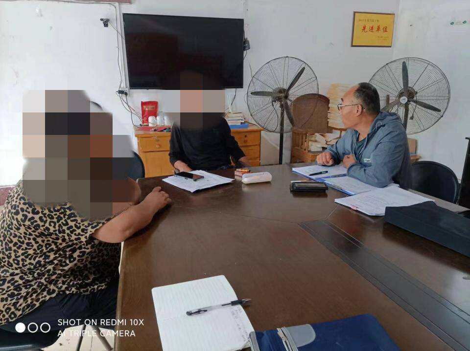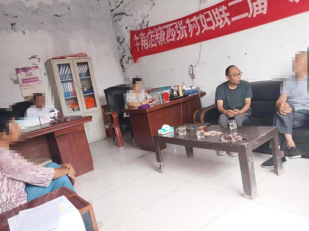 7月4日,法律顾问兼专职人民调解员刘培峰、徐秋芳在西张村处理邻里纠纷。